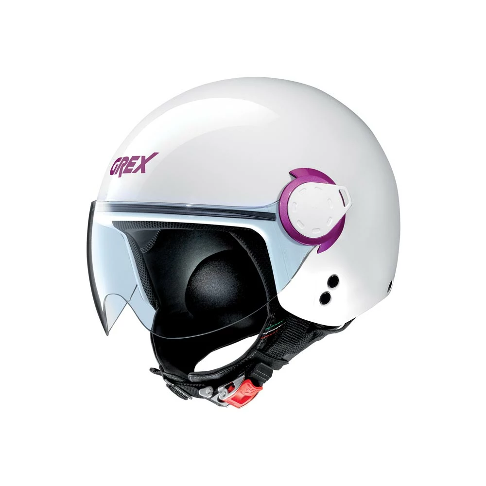 È il mini jet di Grex, modello Couplé, che beneficia quest’anno di una nuova imbottitura interna di conforto amovibile e lavabile. E’ costruito sulla solida base del modello Nolan N20. Il design sempre attuale, volume contenuto (grazie alla disponibilità di due misure di calotta esterna), sistema di ritenzione Microlock con regolazione micrometrica ed un buon comfort generale fanno di G3.1E un prodotto interessante per chi desidera un mini jet, con particolare attenzione al prezzo e con la garanzia dell’esperienza Nolan. Accanto alle tradizionali varianti monocolore (Kinetic), la gamma propone delle ulteriori versioni monocolore dalla connotazione maggiormente Fashion (Couplè)